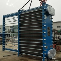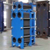 板式热交换器是由一组波纹金属板组成,上有四个角孔,供传热的两种液体通过。金属板片安装在一个侧面有固定板和活动压紧板的框架内,并用夹紧螺栓夹紧。板片上装有密封垫片,将流体通道密封,并且引导流体交替地流至各自的通通内,形成热交换。流体的流量,物理性质,压力降和温度差决定了板片的数量和尺寸。板片的波纹不仅提高了湍流程度并且形成许多支撑点,足以承受介质间的压力差,金属板和活动压紧板悬挂在上导杆上并由下导杆定位,而杆端则固定在支撑柱上,但如果其中一种液体或两种液体在换热器内不止通过一次,则接口应开在固定板和活动压紧板上,在大多数场合使用单程,所有管路都连接固定压板上,检查拆鞋打开换热器,不必拆卸管道.